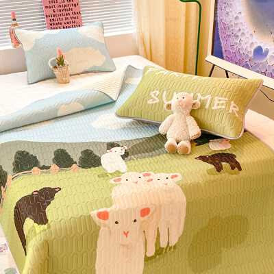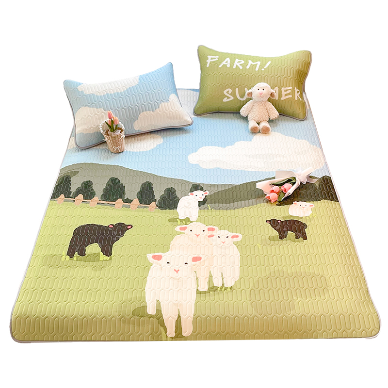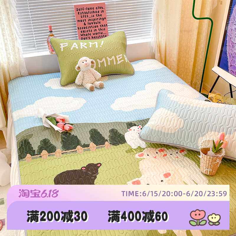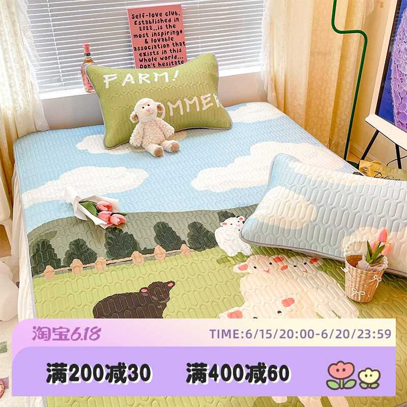 可爱绵羊凉感丝乳胶席1.5m1.8米冰丝席夏季空调软席凉席1..2米套