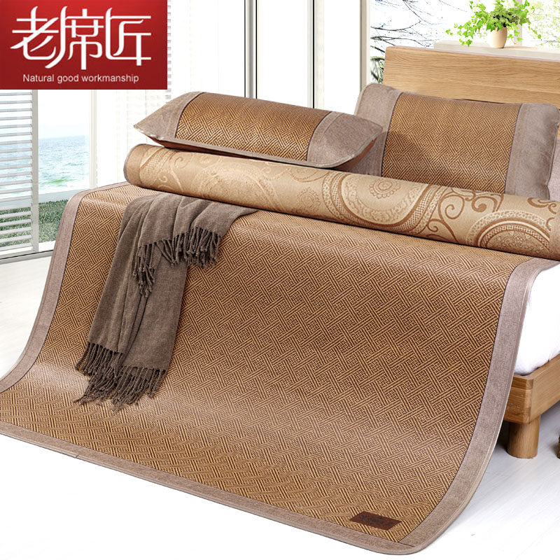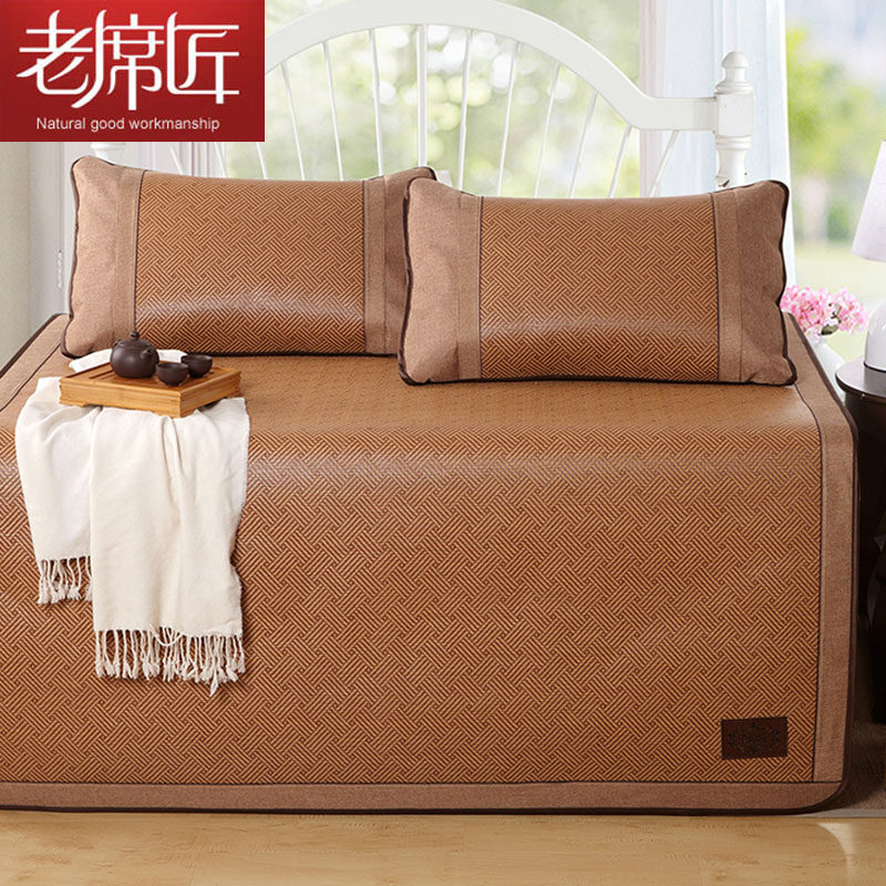 凉席老席匠三件套1.8双人床裸睡正反两用双面藤席夏天冰丝席1.5米