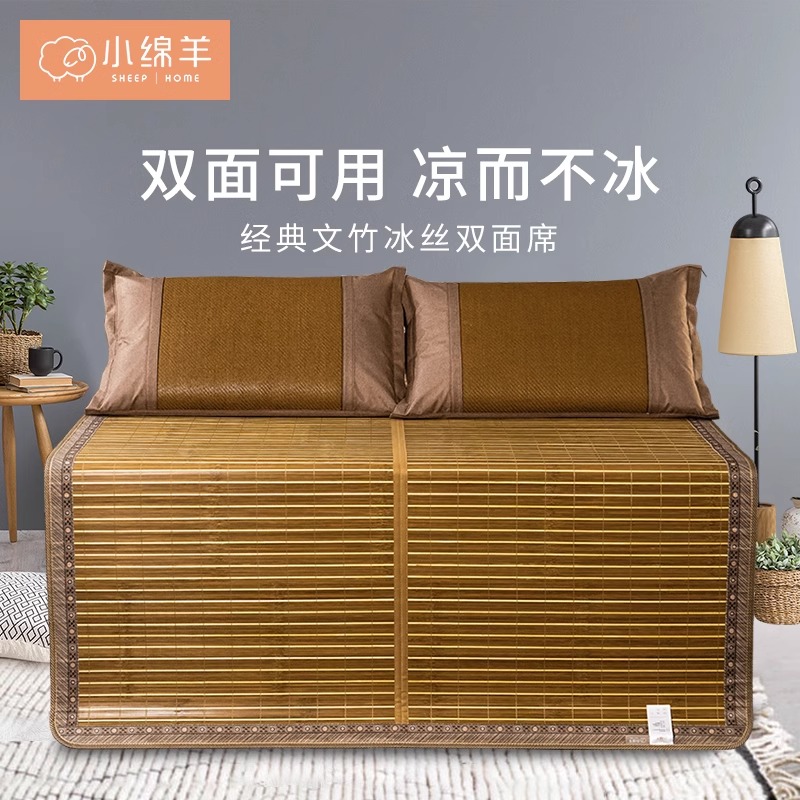 小绵羊经典文竹冰丝双面席可折叠夏季凉席家用双人竹席子冰丝席