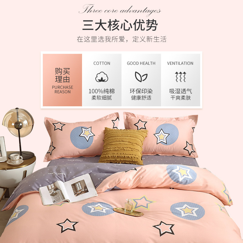 小绵羊纯棉四件套床单被套学生宿舍单人被罩100全棉床上用品三件