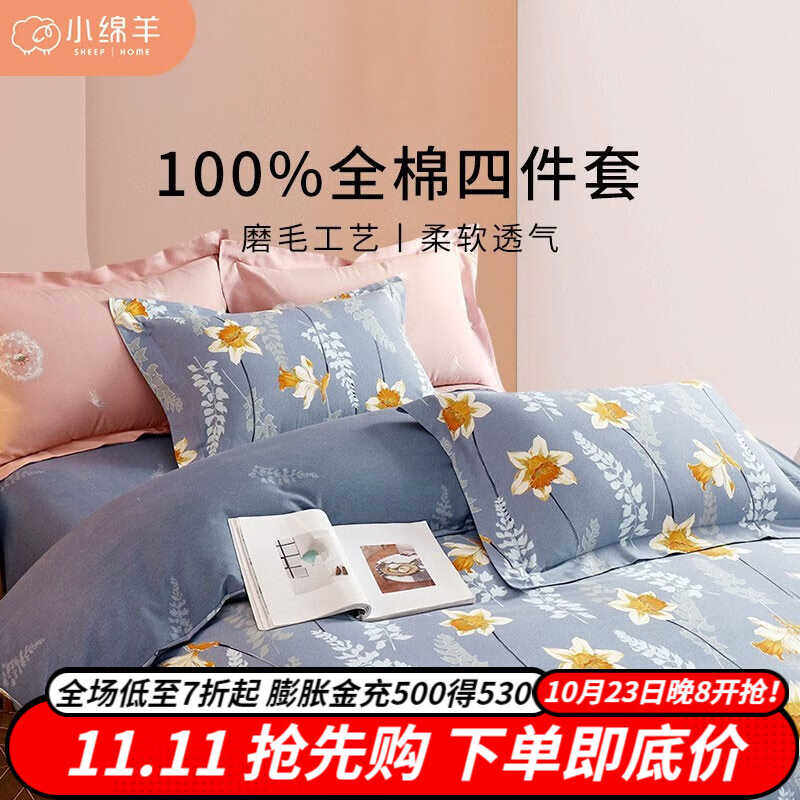 小绵羊100纯棉全棉四件套床上用品4件套家纺可水床单被套