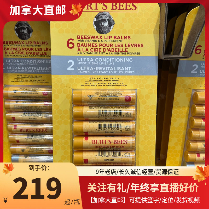 直邮加拿大Burt's Bees小蜜蜂润唇膏8支装