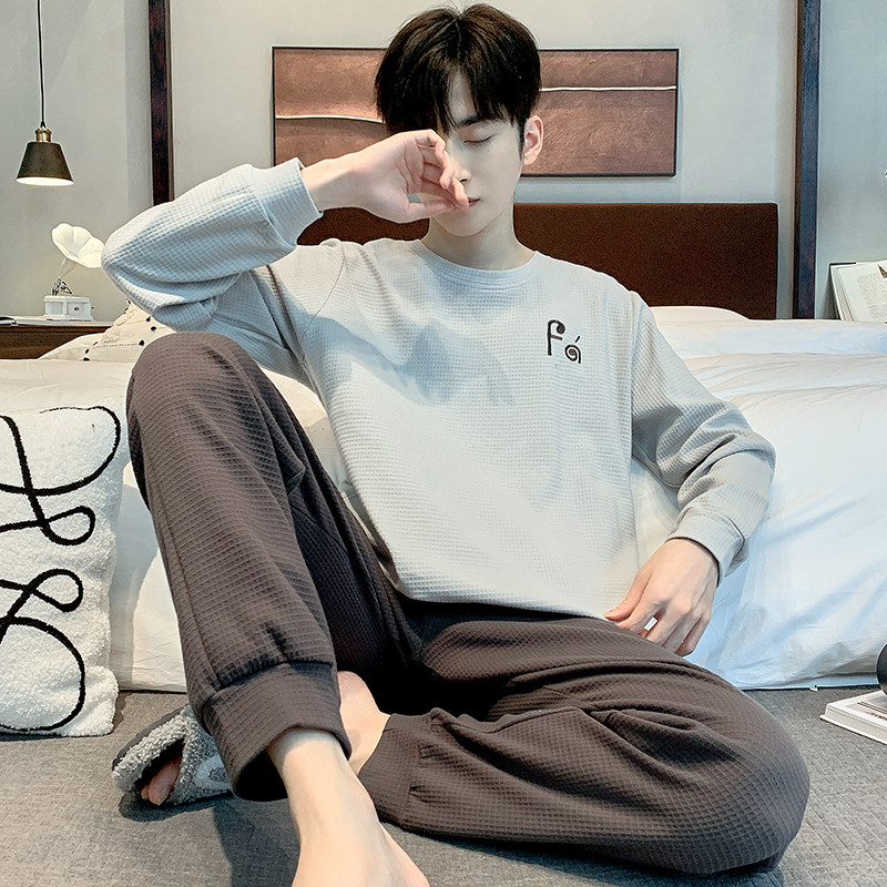 纯棉睡衣男短袖长裤两件套夏100%全棉春秋可外穿休闲青少年家居服
