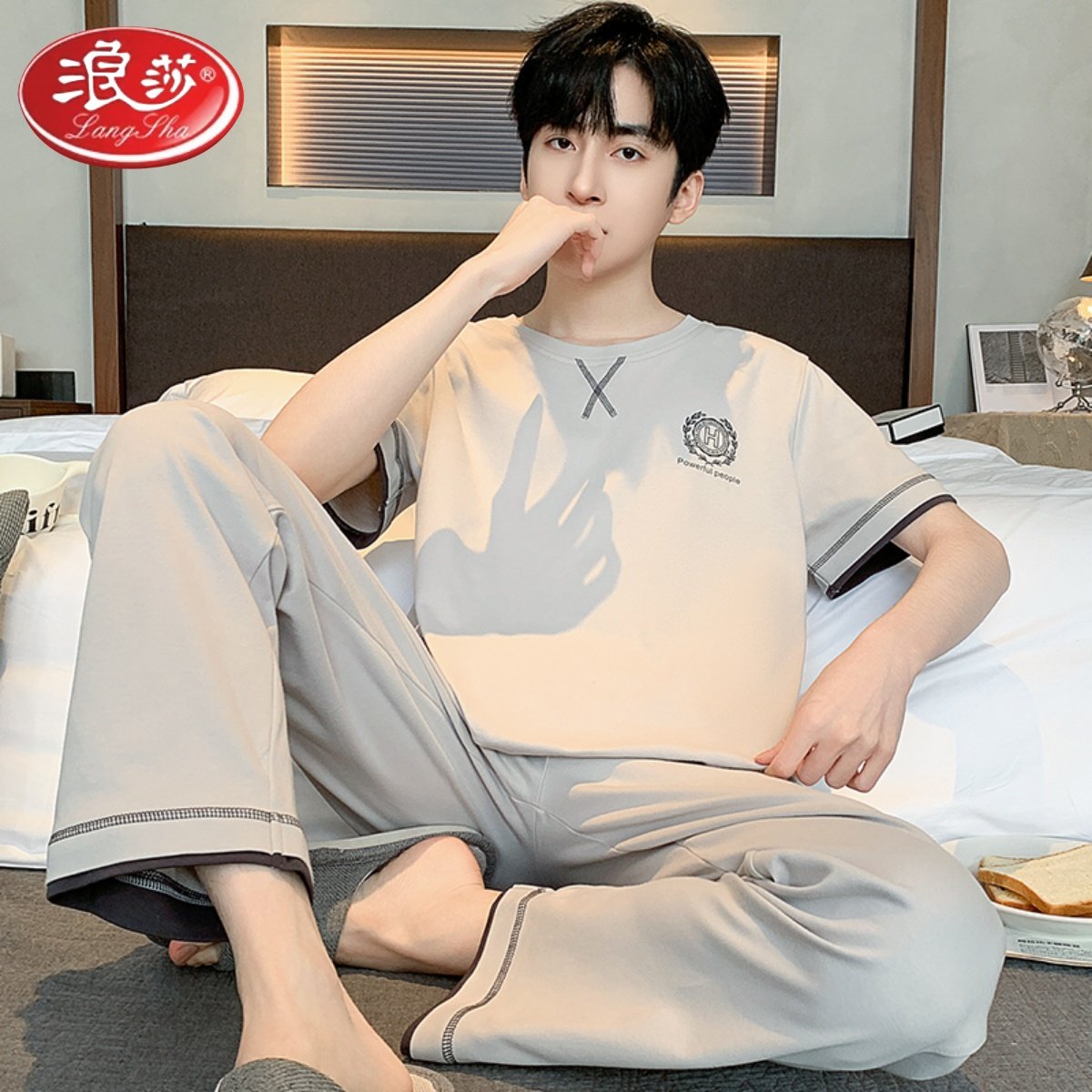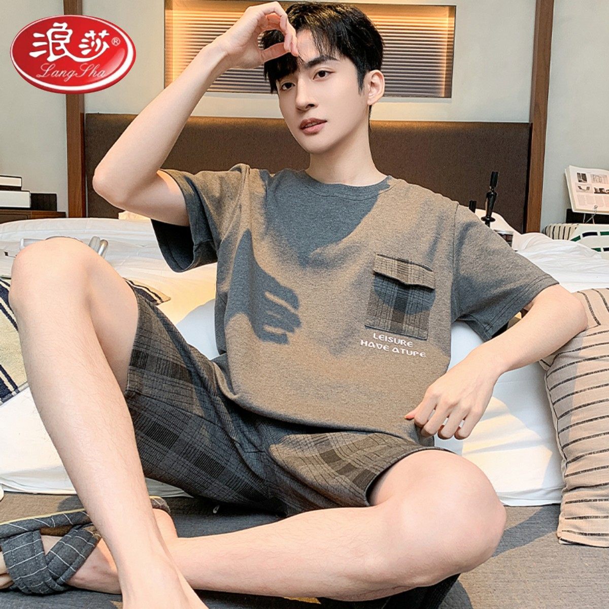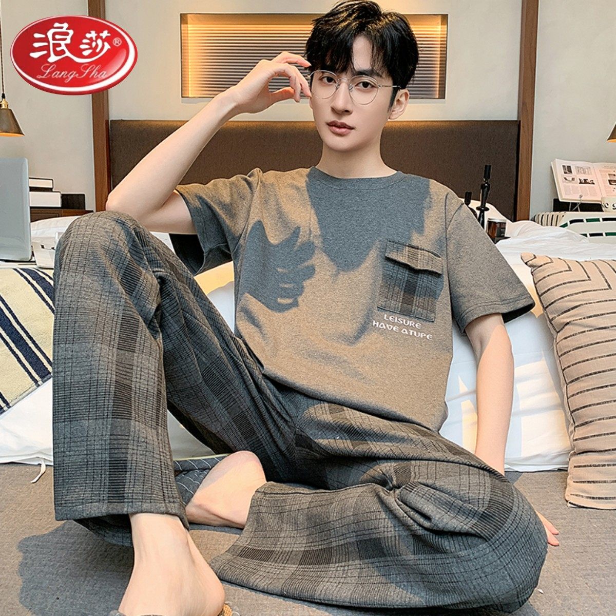 浪莎2024新款男士睡衣夏季薄款纯棉短袖长裤休闲可外穿家居服套装