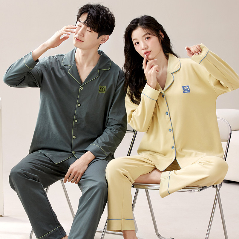 浪莎春秋季睡衣男纯棉长袖长裤纯色简约休闲可外穿男式家居服套装