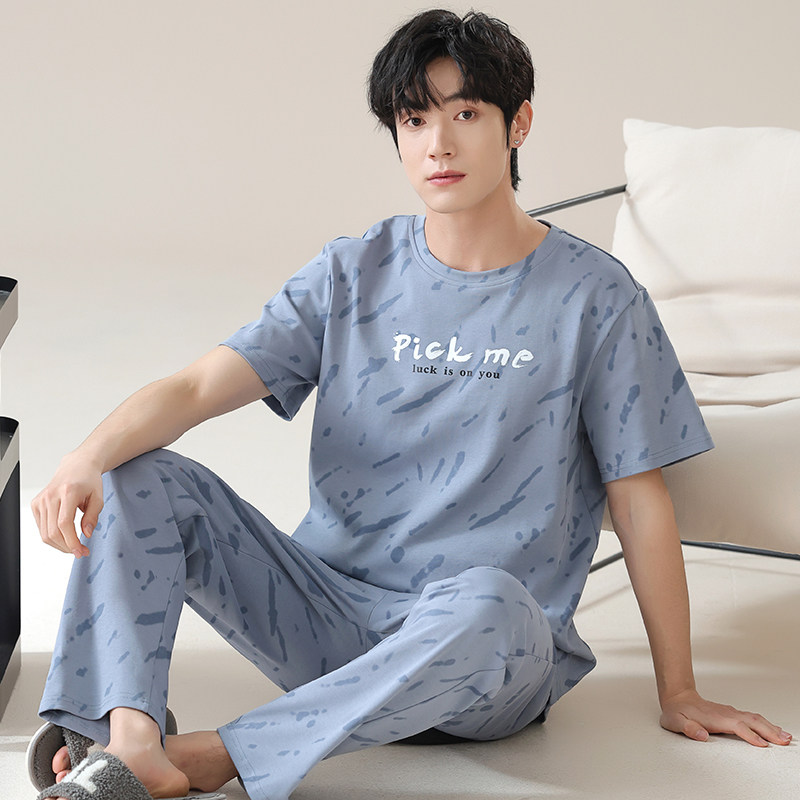 男士睡衣夏季纯棉短袖长裤可外穿休闲家居服男款春秋薄款全棉大码
