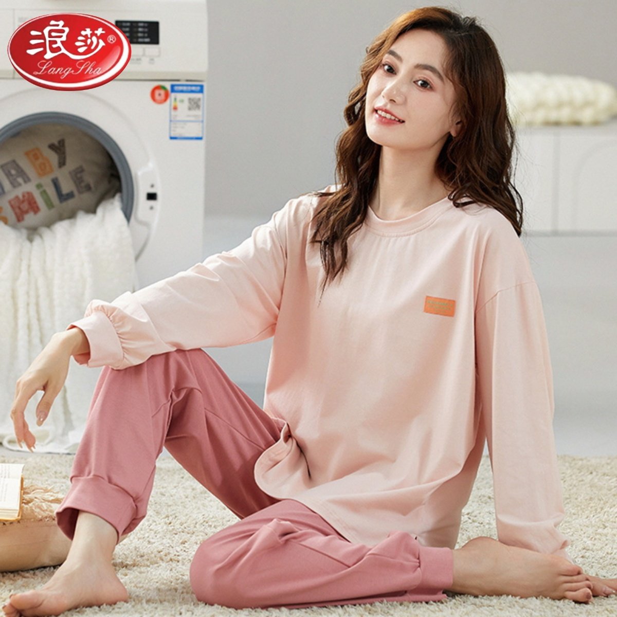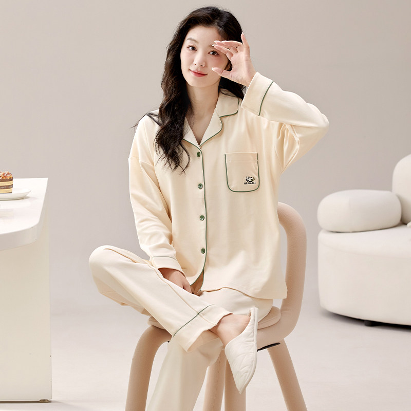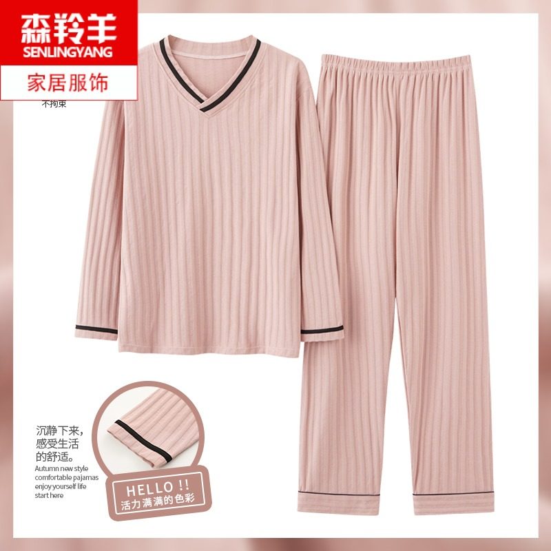 浪莎睡衣女春秋季纯棉长袖长裤2024新款可外穿休闲纯色家居服套装