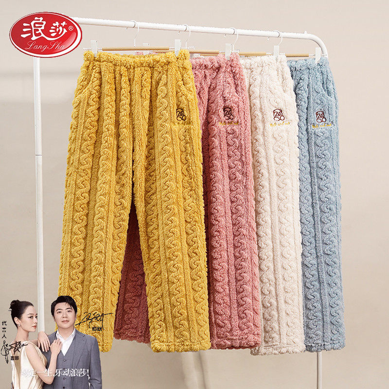 浪莎法兰绒睡裤女秋冬季珊瑚绒加绒加厚保暖长裤家居休闲裤可外穿