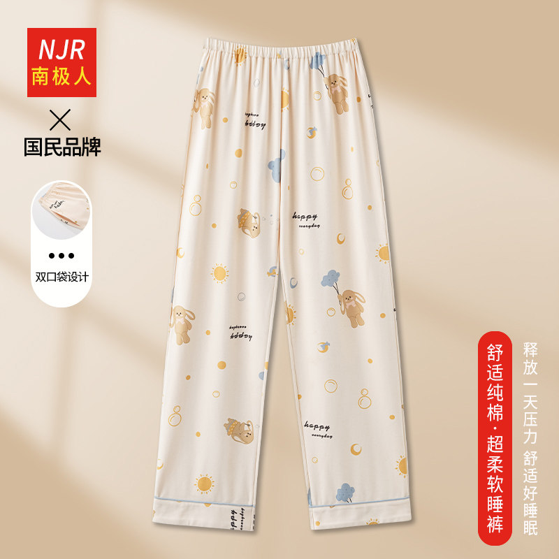 南极人纯棉睡裤女士春夏季薄款长裤春秋款大码可外穿休闲家居单裤