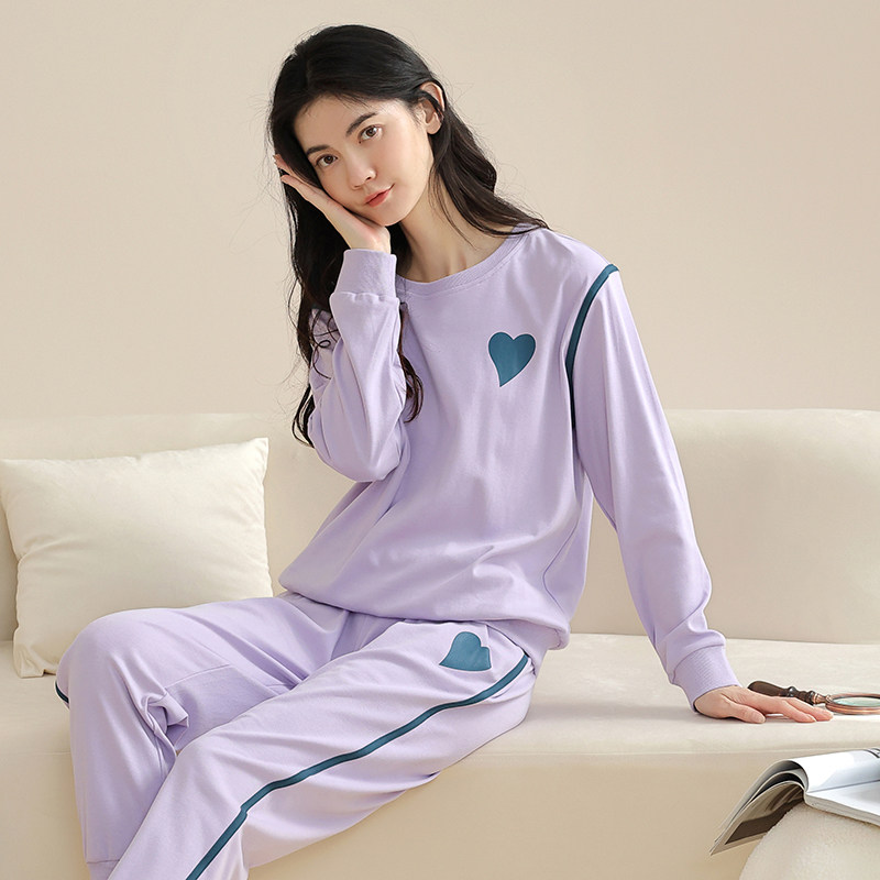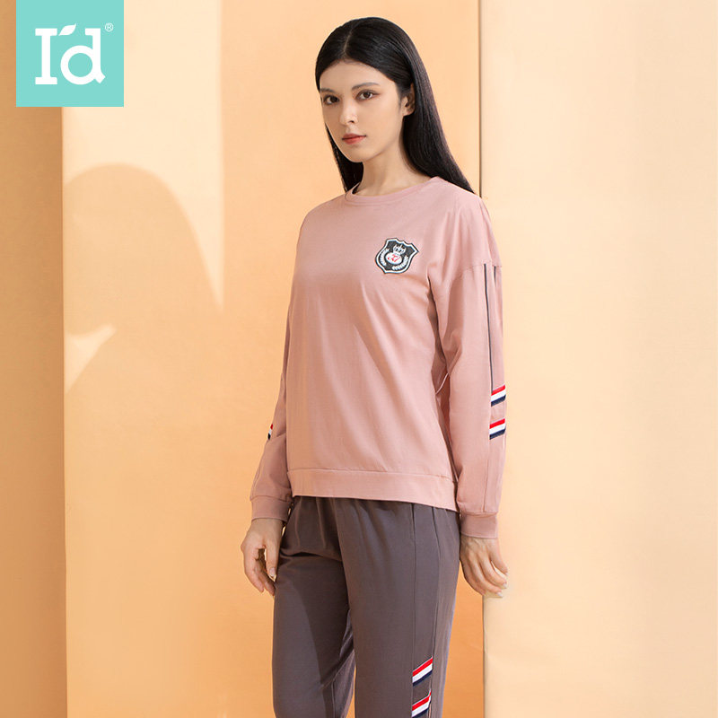 爱帝100%棉精梳棉套头家居女春季新款长袖长裤休闲可外穿纯色睡衣