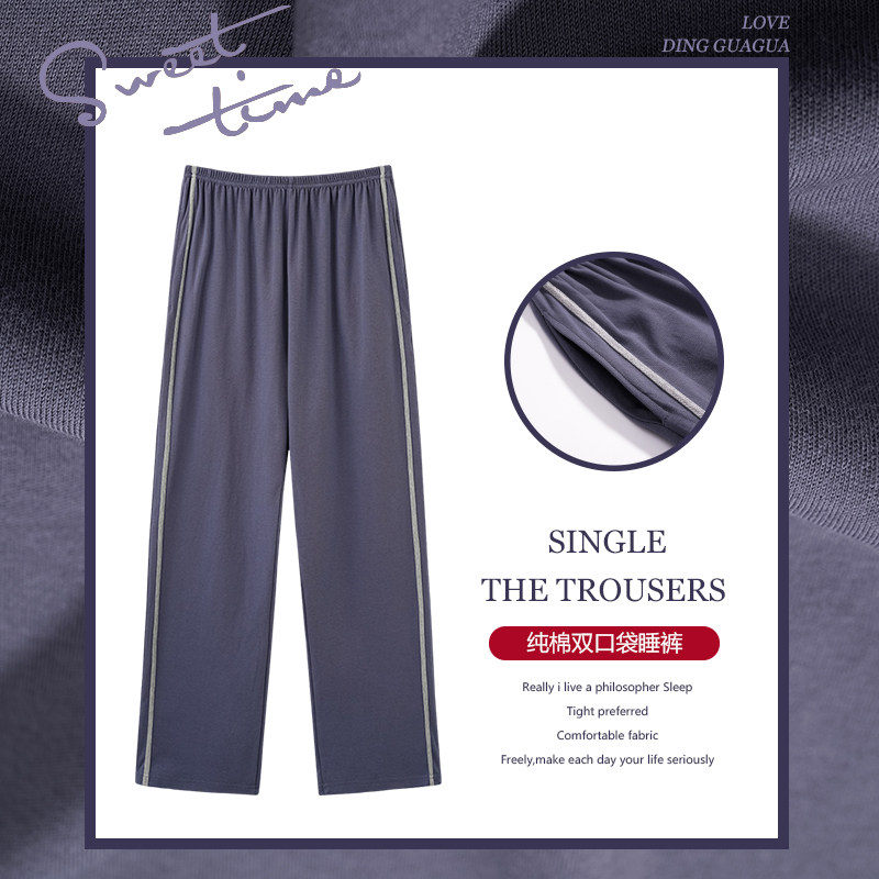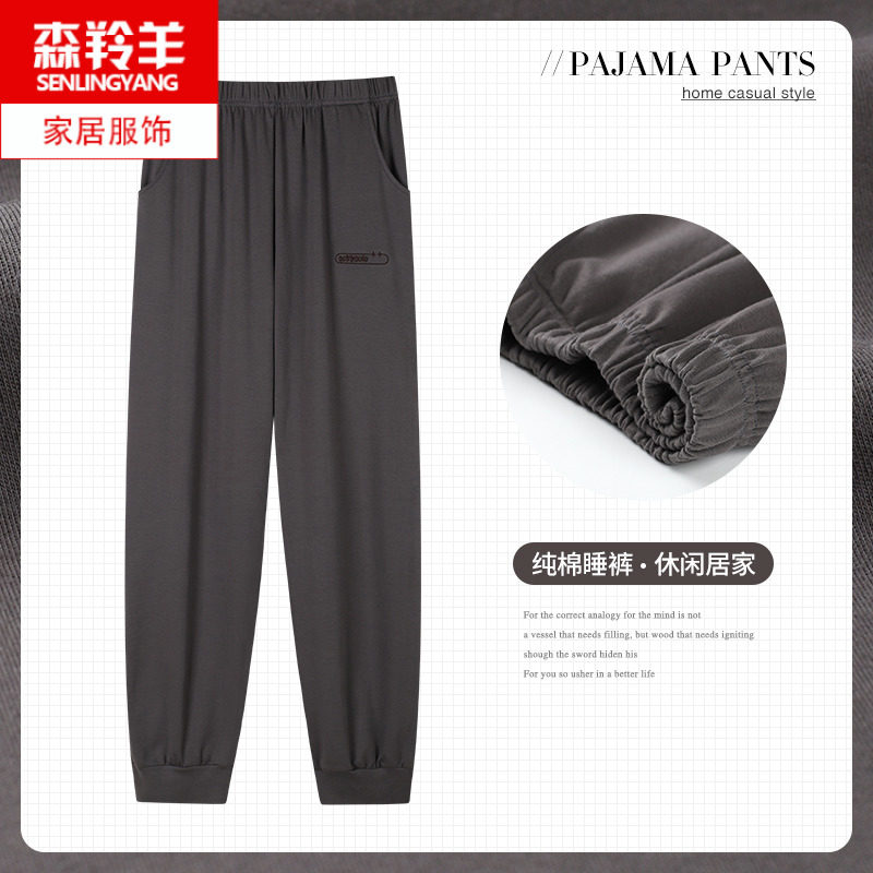 睡衣纯棉居家长裤春秋季男士休闲薄款宽松大码纯色家居睡裤可外出