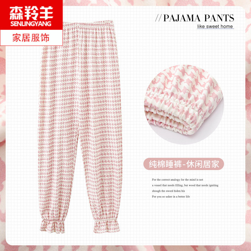 俞兆林睡裤女春夏季纯棉防蚊居家长裤休闲时尚可外穿全棉家居裤子