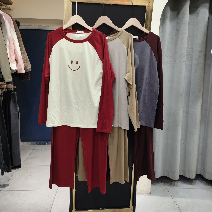 春季新款笑脸长袖长裤睡衣女士宽松可外穿休闲甜美家居服套装8832