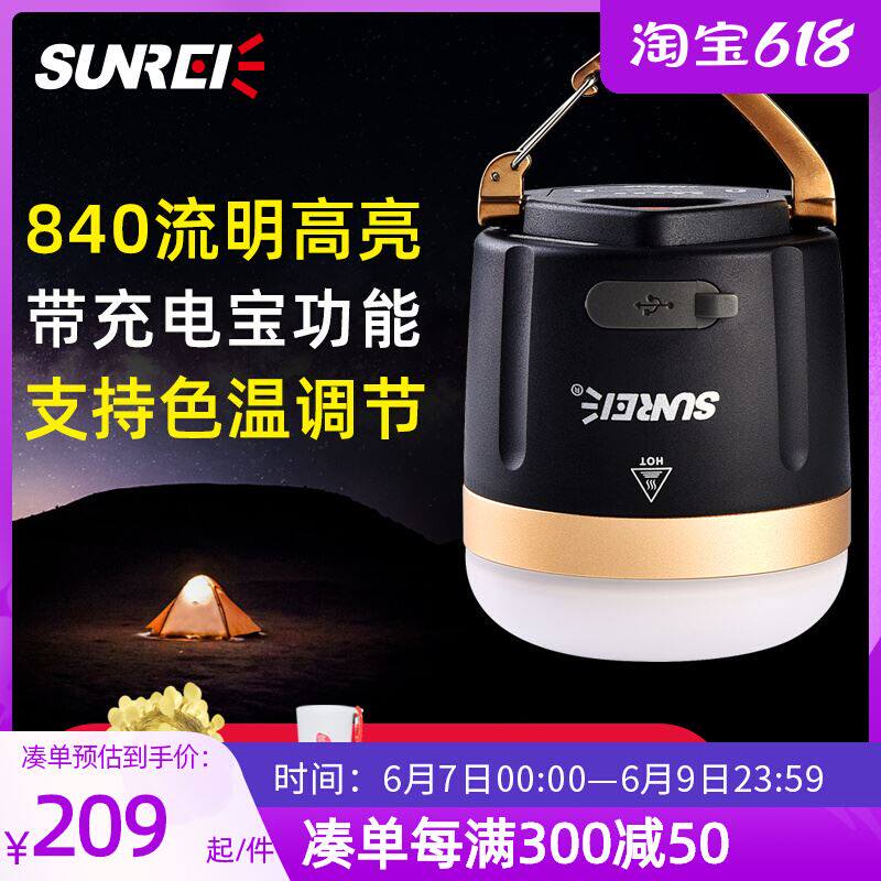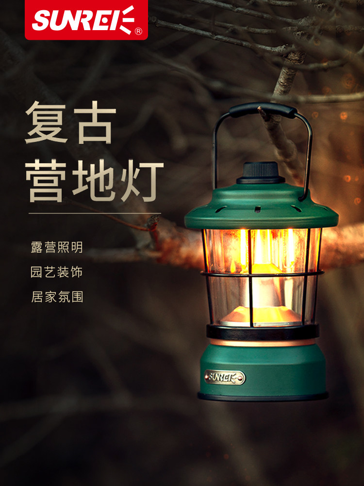 SUNREI/山力士led复古灯户外露营帐篷灯可充电移动野营照明氛围灯