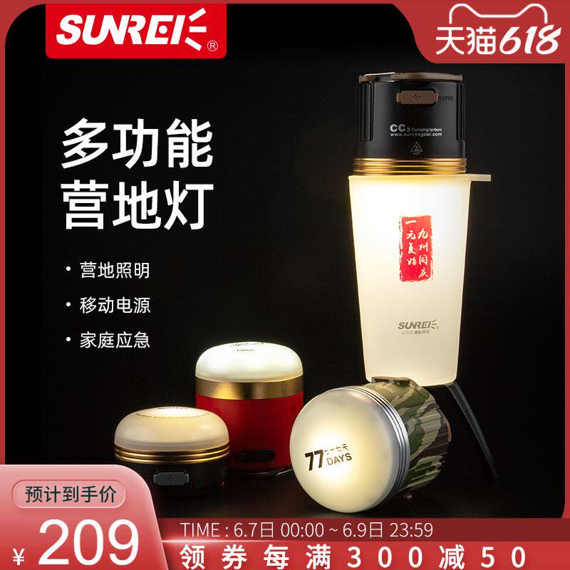 山力士SUNREECC3营地灯帐篷灯露营灯野营灯户外超亮充电应急灯遥