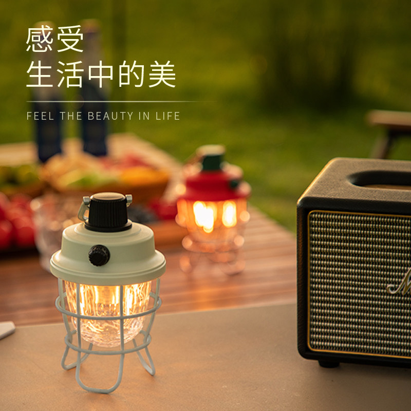 山力士led复古灯墨绿色可充电移动照明灯氛围灯家用露营灯帐篷灯