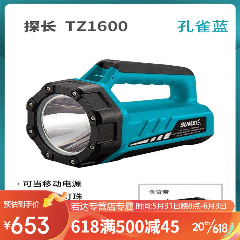 SUNREI山力士TZ1200探照灯LED强光手电筒充电超亮多功能手提矿灯