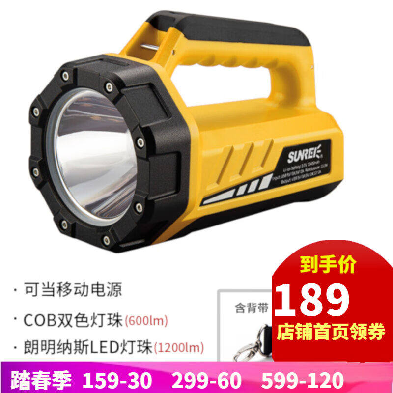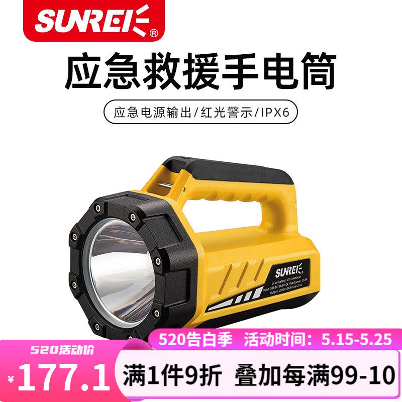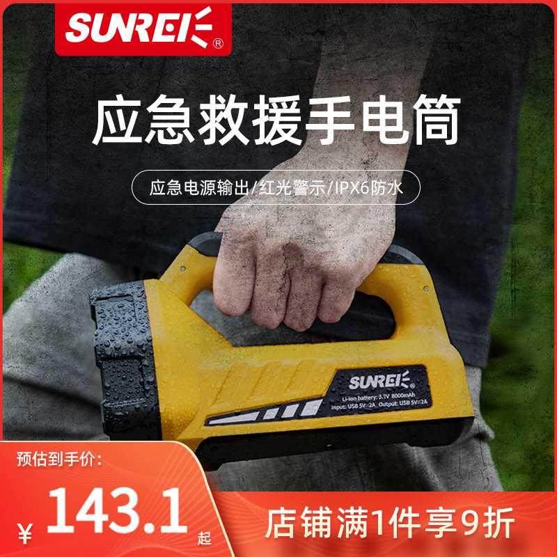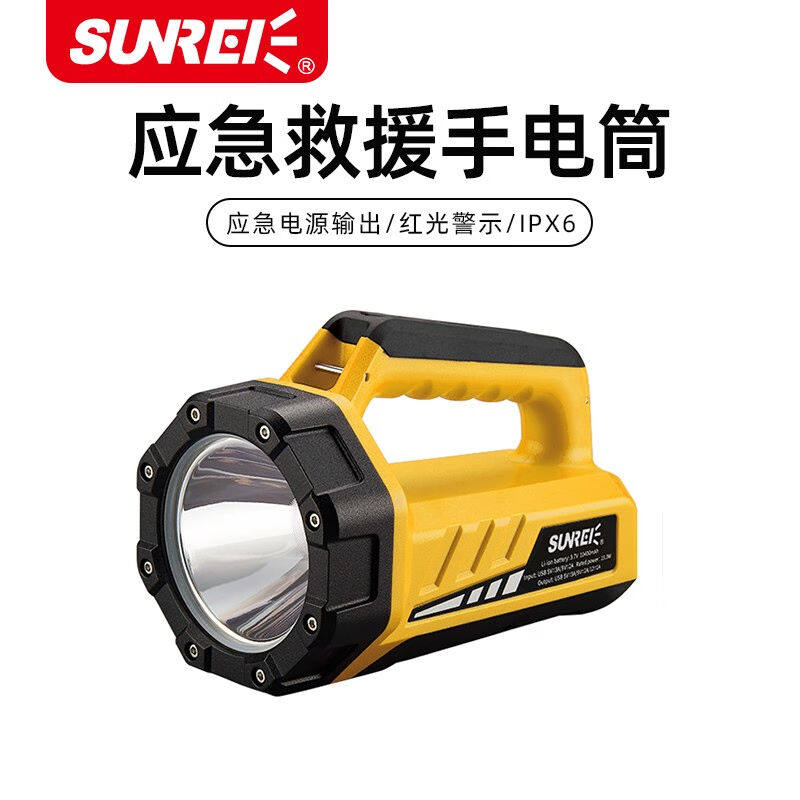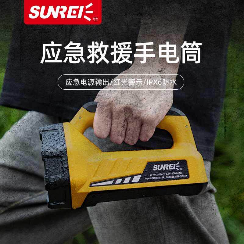 sunrei山力士高亮手电筒户外多功能便携登山应急救援照明灯工作灯