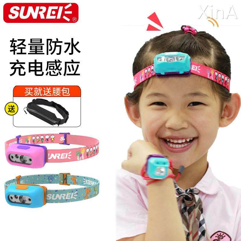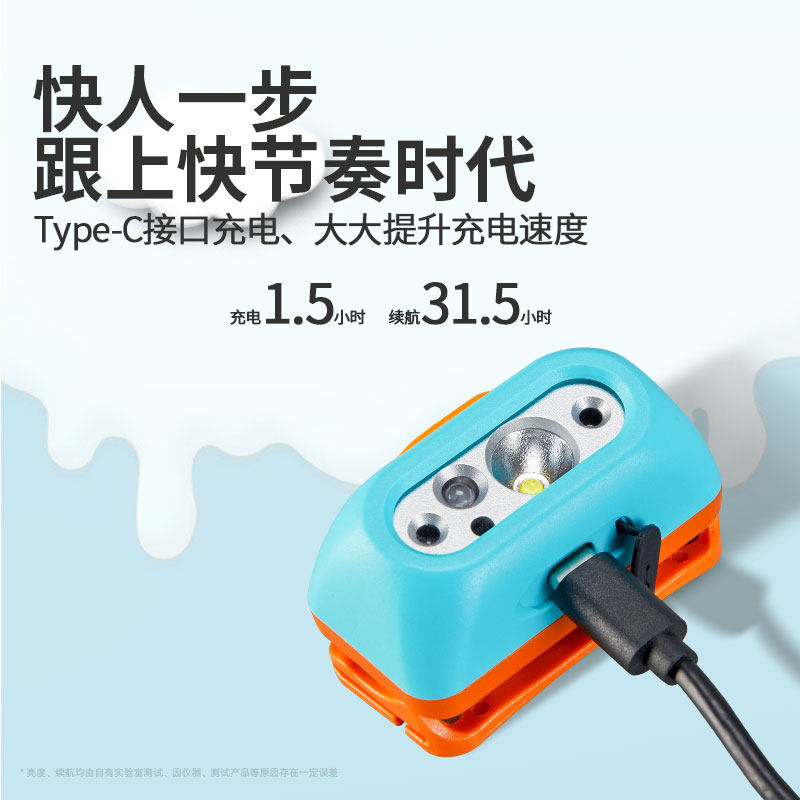 山力士儿童头灯头戴式手电筒充电强光户外露营照明灯防水探照灯