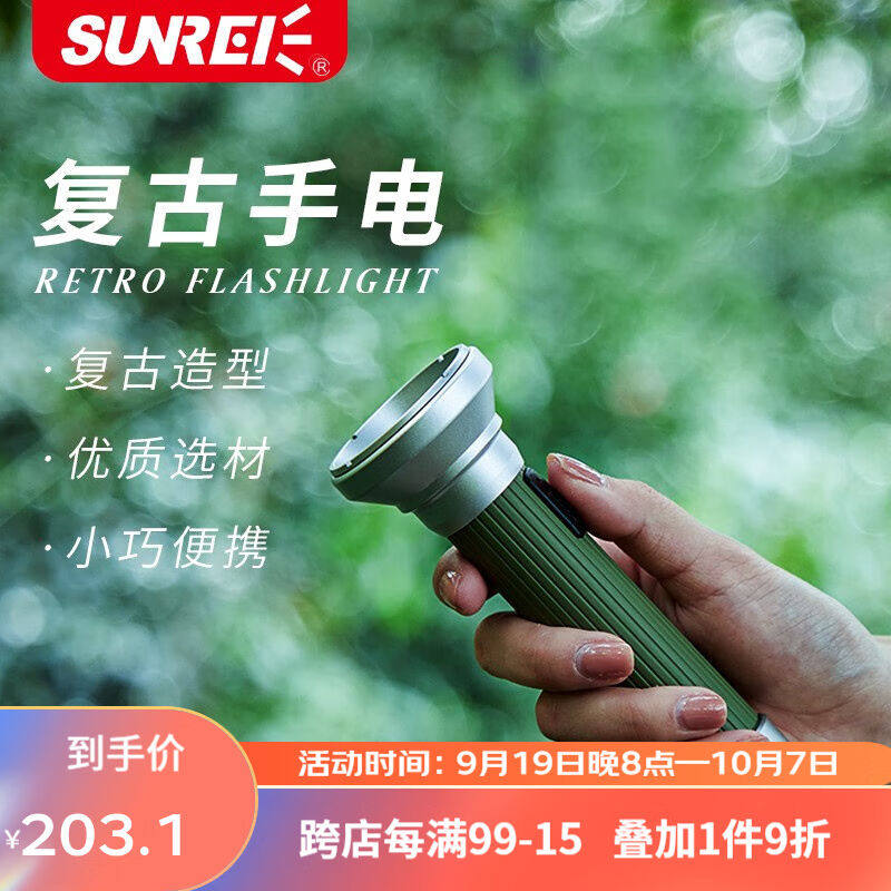 山力士星野复古手电筒强光远射手电家用停电便携应急灯充电防水巡