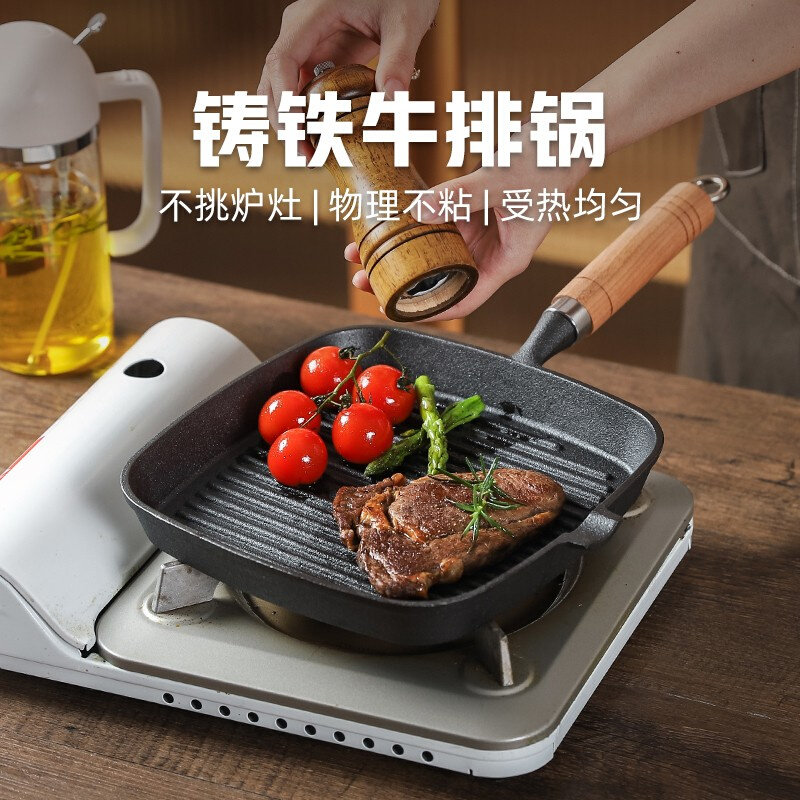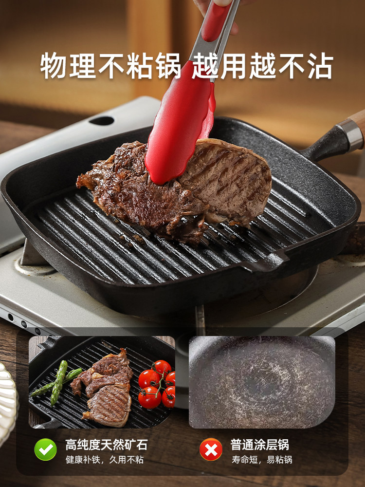 川岛屋牛排煎锅家用铸铁平底锅煎牛扒条纹专用锅不粘锅煤气灶适用