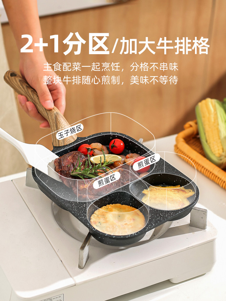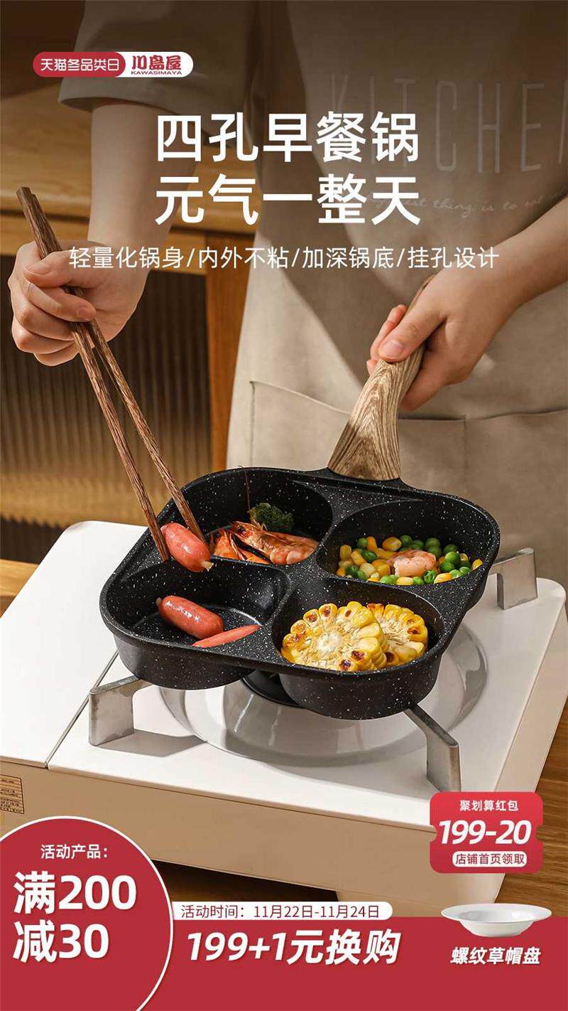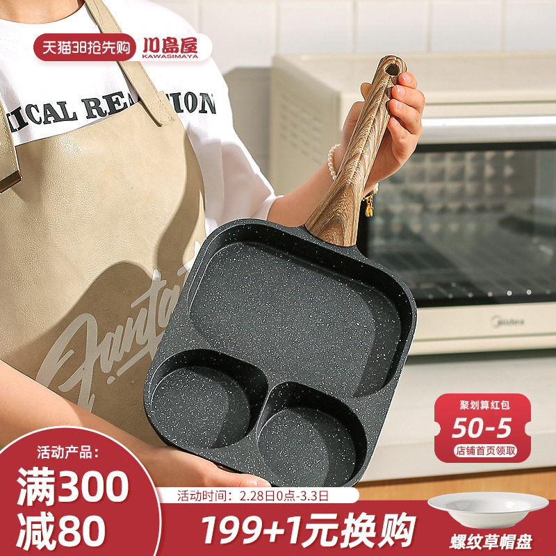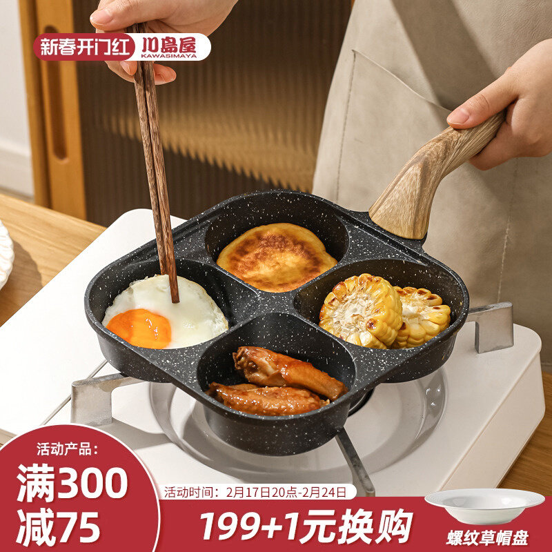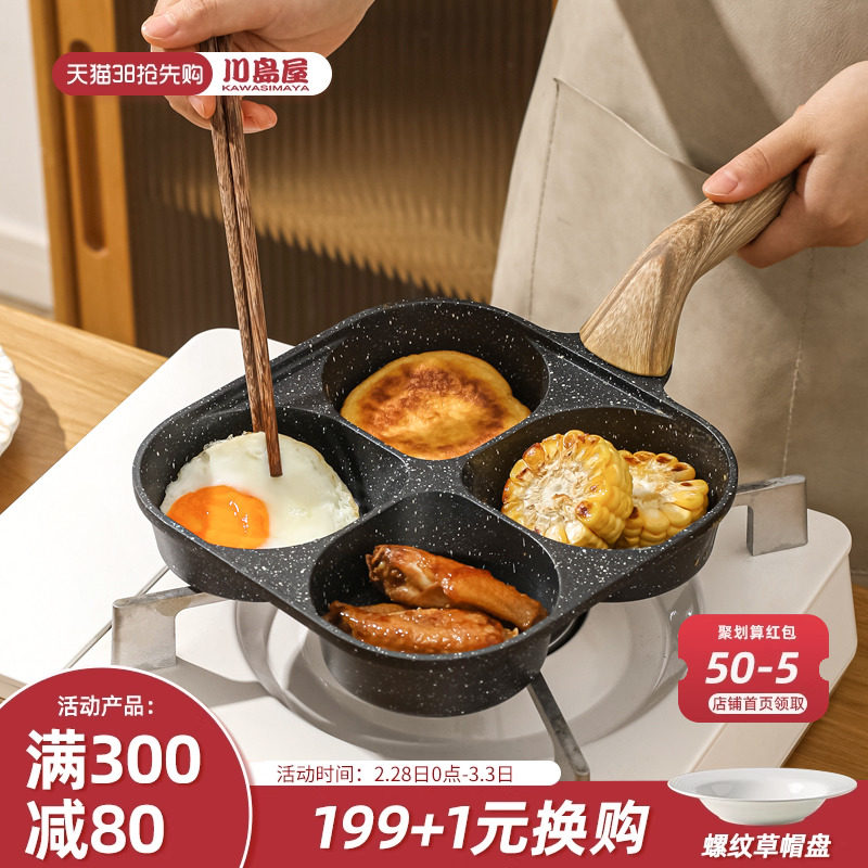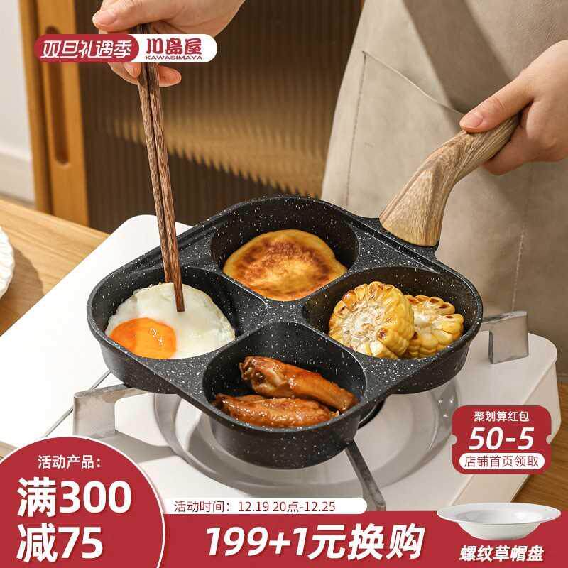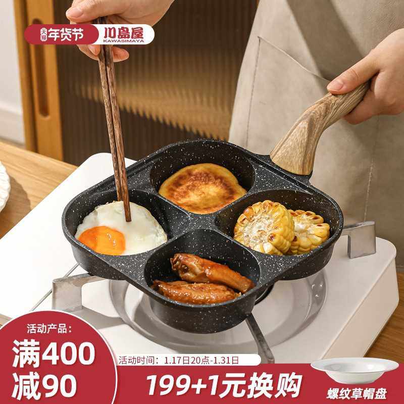 川岛屋早餐煎蛋锅家用煎蛋神器不粘锅四孔小煎锅煎饼锅鸡蛋汉堡锅