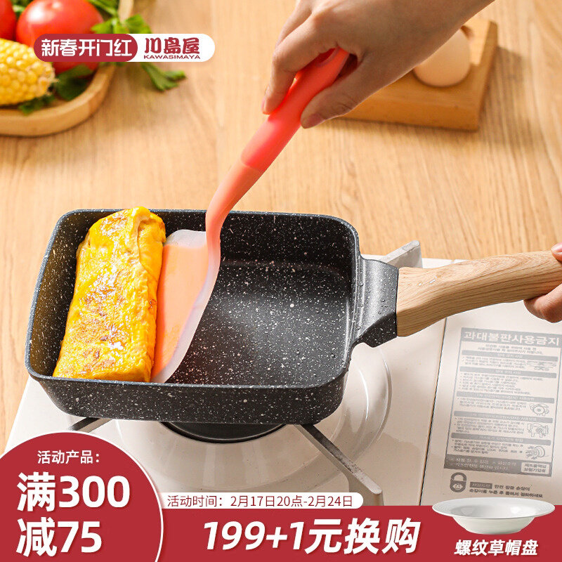 川岛屋日式玉子烧煎锅平底锅家用不粘锅厚蛋烧锅早餐煎饼煎蛋神器