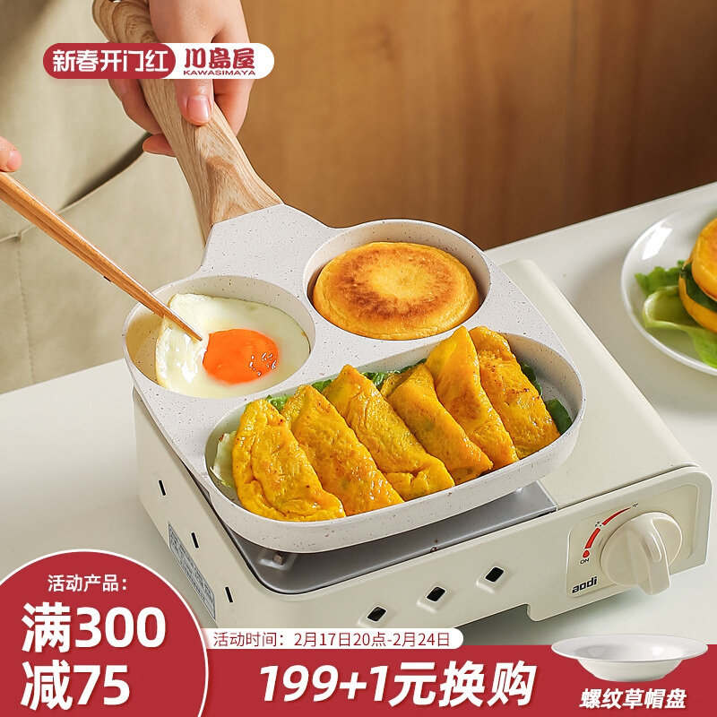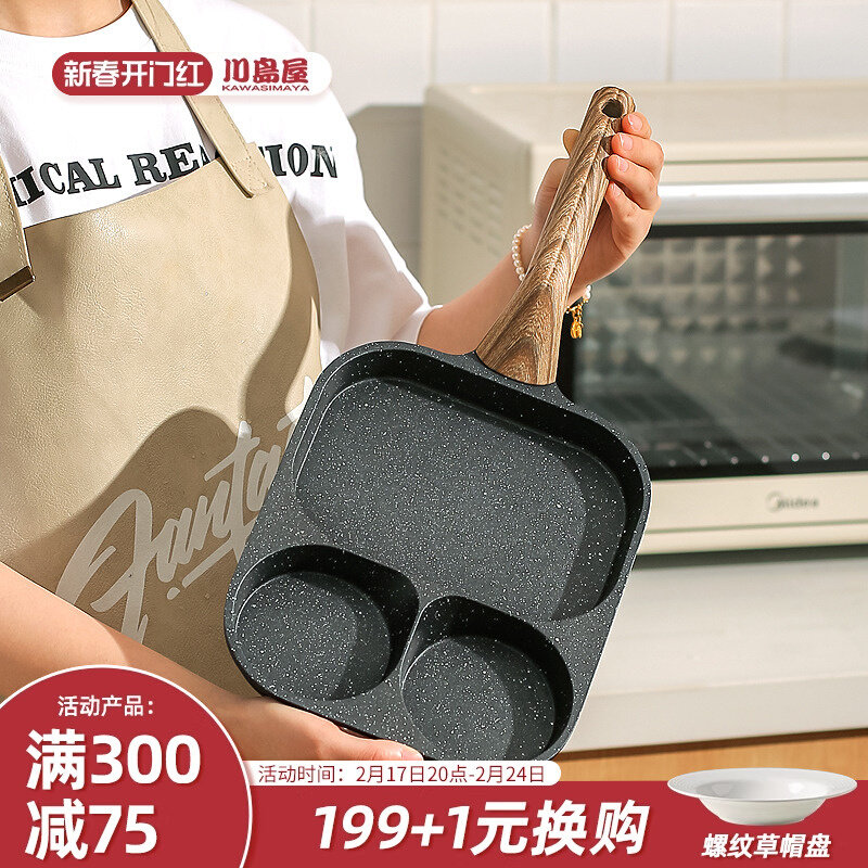 川岛屋三合一早餐锅鸡蛋汉堡锅平底锅家用不粘锅牛排煎锅煎蛋神器