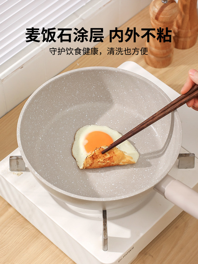 川岛屋麦饭石不粘锅炒锅家用煤气灶电磁炉专用炒菜锅不沾平底煎锅