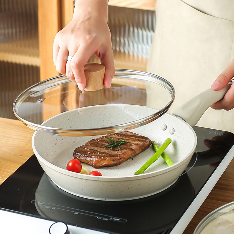 川岛屋麦饭石平底锅家用不粘锅牛排煎锅电磁炉煤气灶烙饼专用炒锅