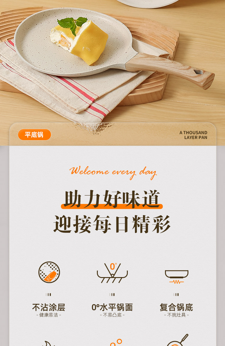 川岛屋不粘锅平底锅班戟蛋糕千层饼专用煎锅煎蛋早餐锅烙饼煎饼锅