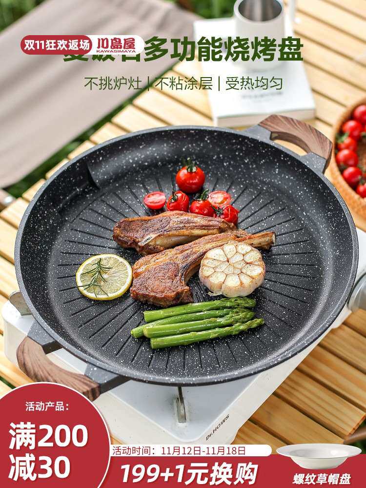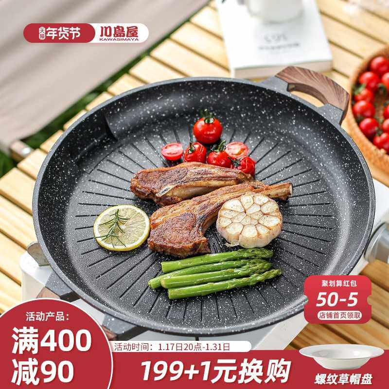 川岛屋韩式麦饭石烤盘户外露营卡式炉烤肉盘家用不粘铁板烧烤肉锅