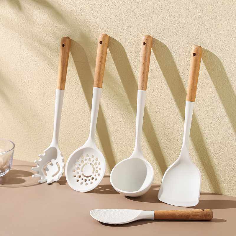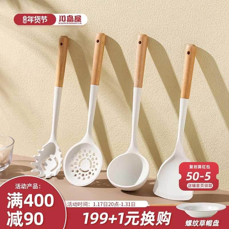 川岛屋硅胶厨具家用厨房食品级硅胶饭勺炒菜铲子汤漏勺组合不粘锅