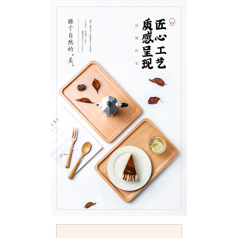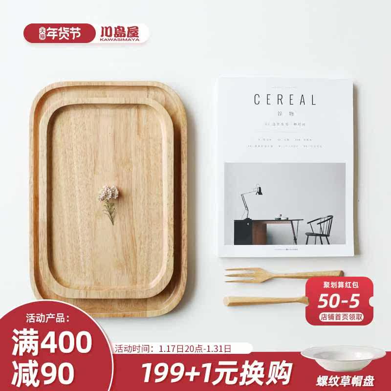 川岛屋日式橡胶木茶盘托盘实木长方形家用放杯子水杯茶杯水果盘子