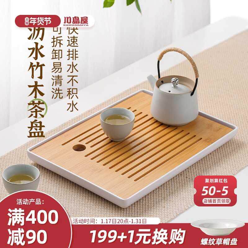川岛屋日式茶盘家用功夫茶具托盘小型茶海茶台一人用放茶杯沥水盘