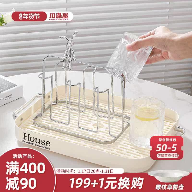 川岛屋沥水托盘家用2023新款轻奢高档杯架放茶杯水杯子长方形茶盘