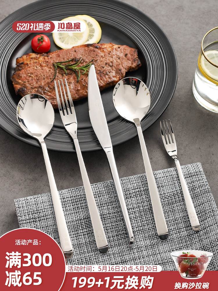 川岛屋不锈钢牛排西餐餐具刀叉勺三件套家用高档叉子刀子套装全套