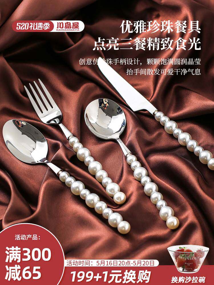 川岛屋不锈钢牛排刀叉套装高颜值珍珠刀叉勺子三件套高档西餐餐具