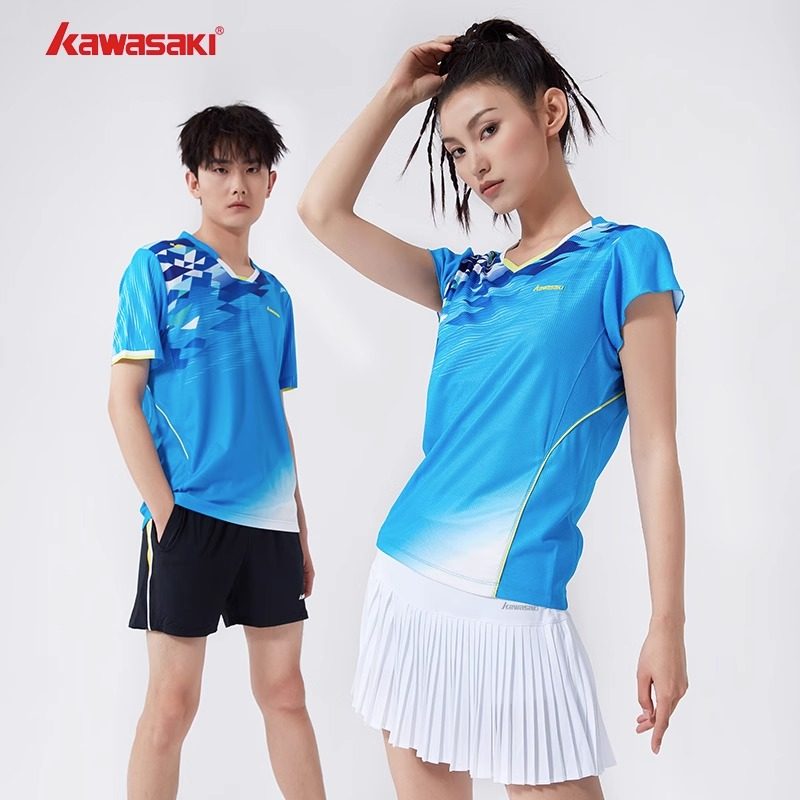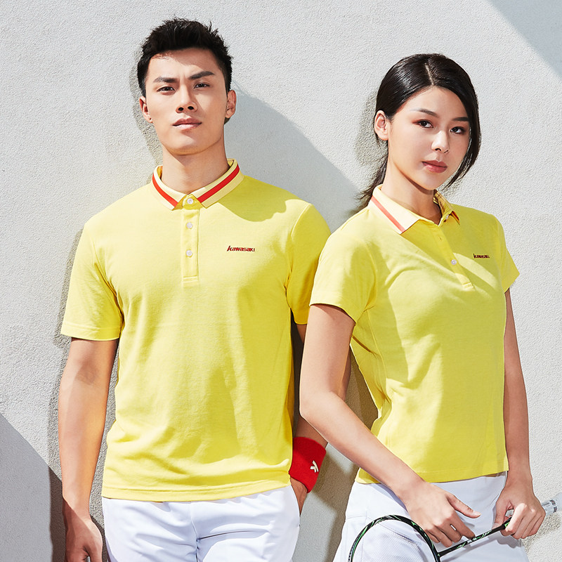 川崎2023夏翻领短袖Polo衫运动透气羽毛球服男女情侣网球专业冰蓝