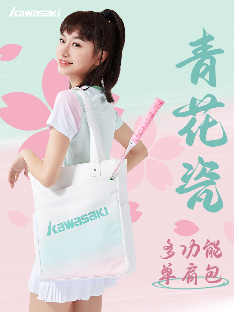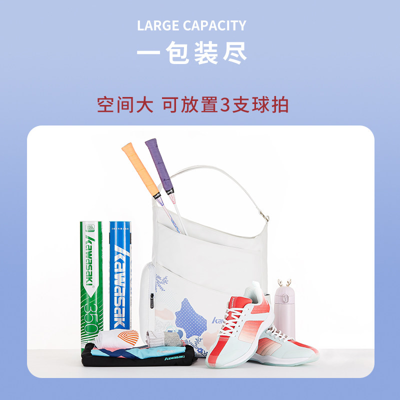 Kawasaki川崎羽毛球女单肩大容量运动斜挎女休闲白色小兰花网球包