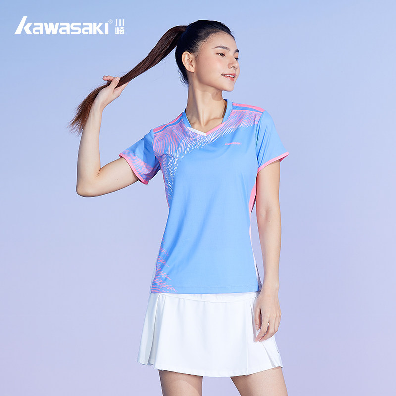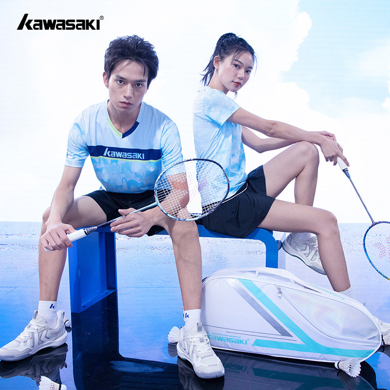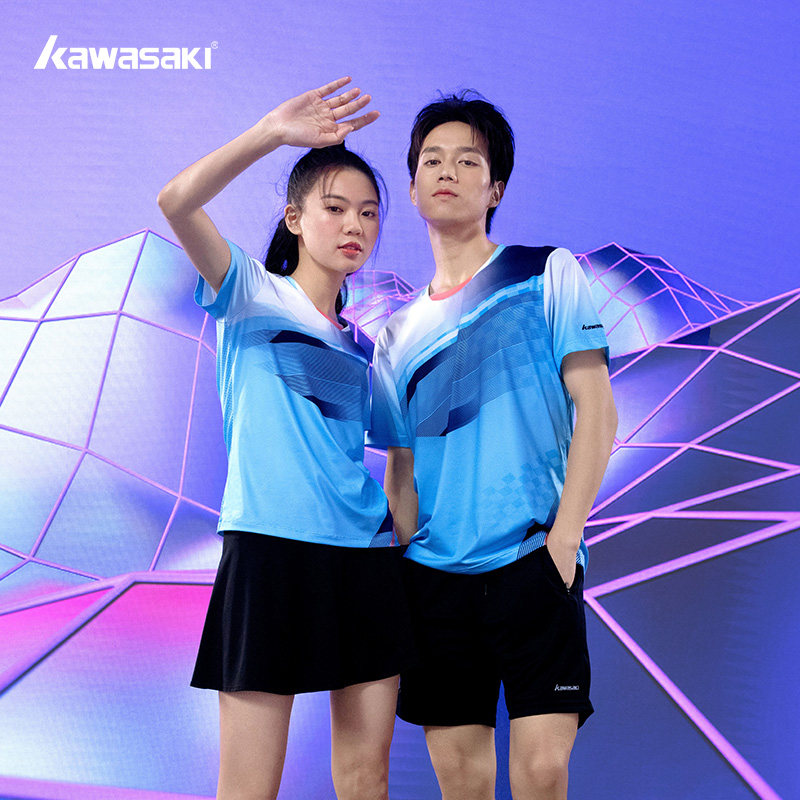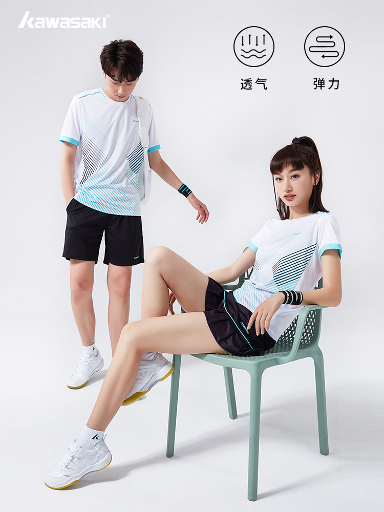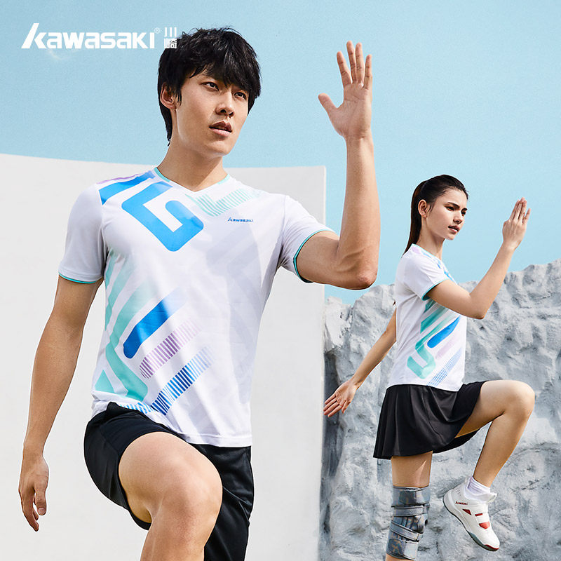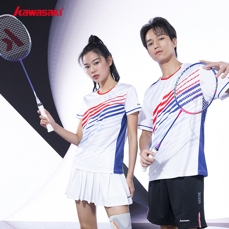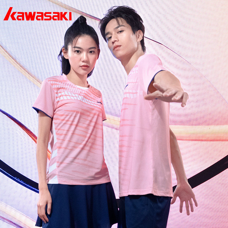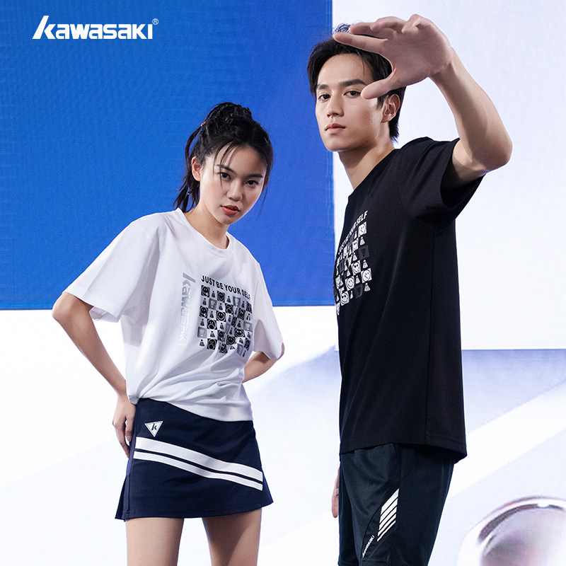 Kawasaki/川崎2023春夏款专业羽毛球服运动T恤吸汗透气男女情侣款
