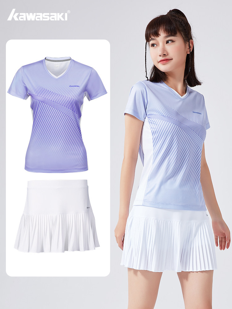 Kawasaki2023春夏新款羽毛球服运动套装休闲上衣+运动短裙两件套