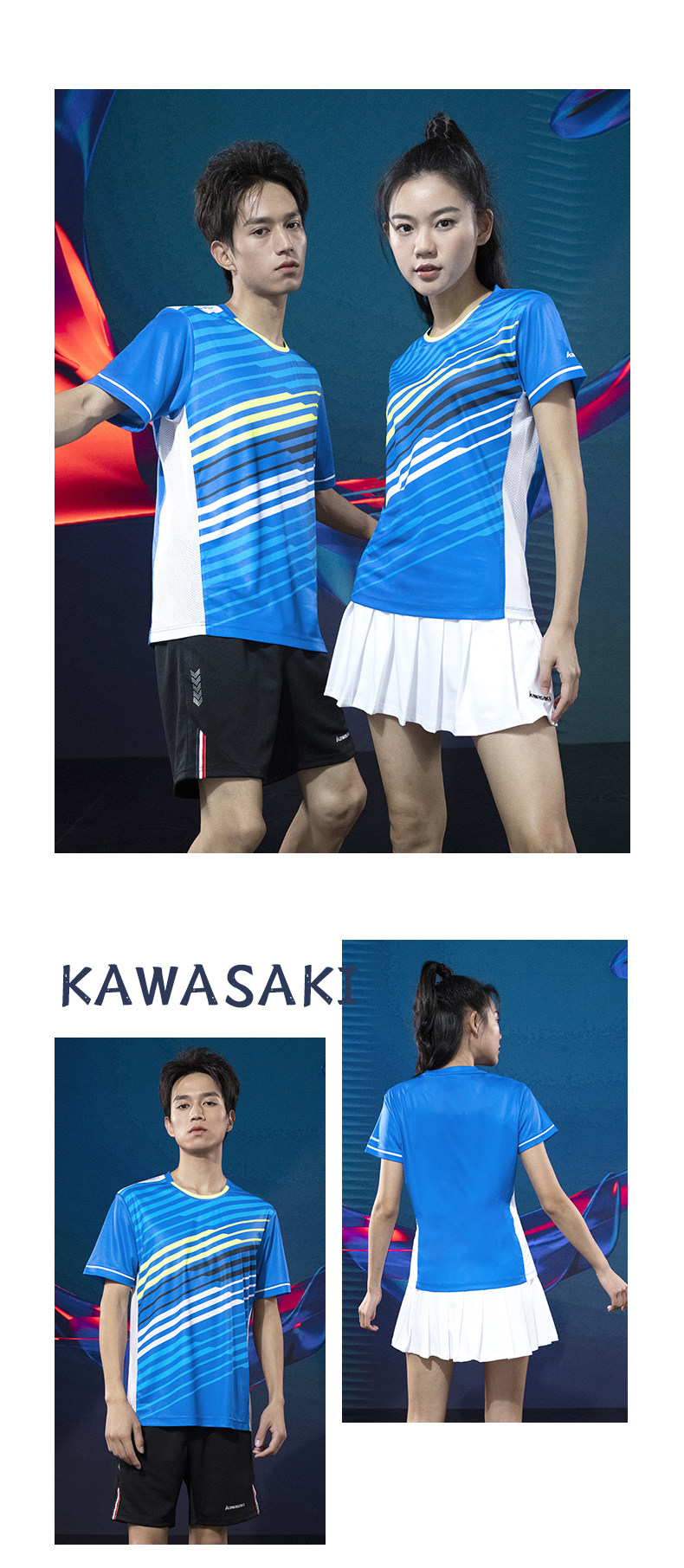 Kawasaki/川崎春夏款专业羽毛球服运动套装T恤吸汗透气男女情侣款