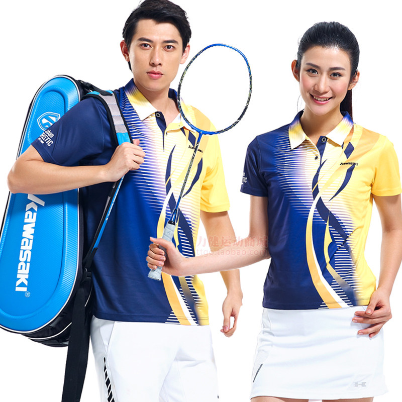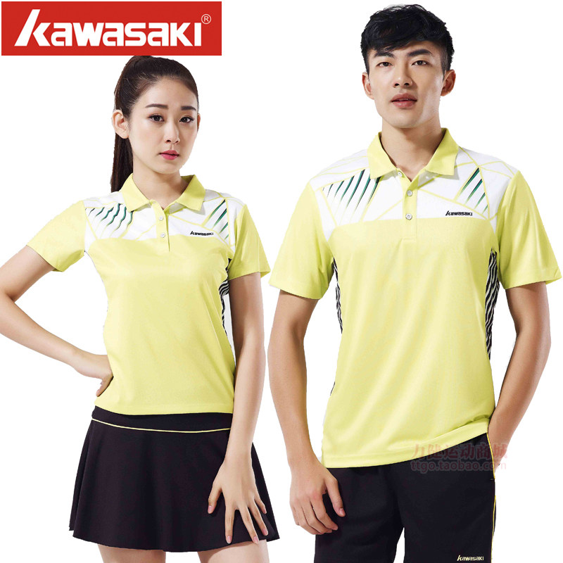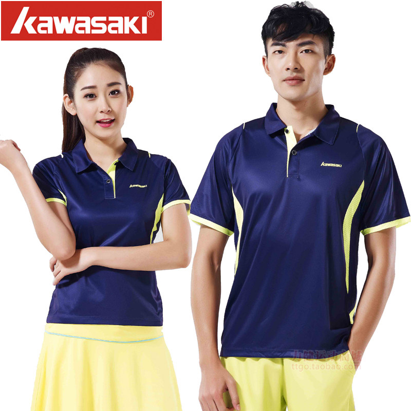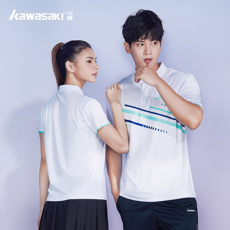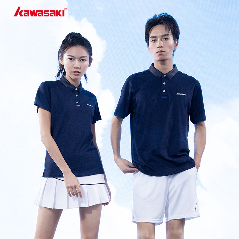 Kawasaki/川崎春夏款专业羽毛球服运动翻领T恤吸汗透气男女情侣款