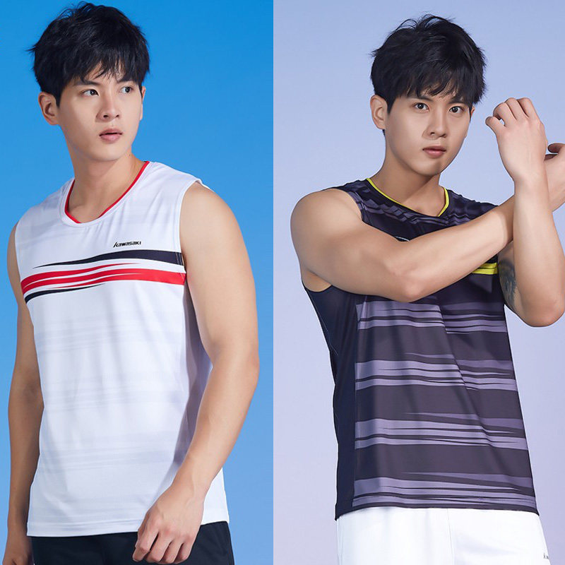Kawasaki/川崎新款羽毛球运动服男款背心 圆领背心速干T恤
