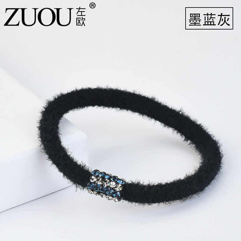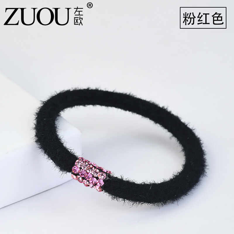 左欧小皮筋扎马尾不伤发高弹力耐用毛绒彩L色发圈钻基础发绳皮套