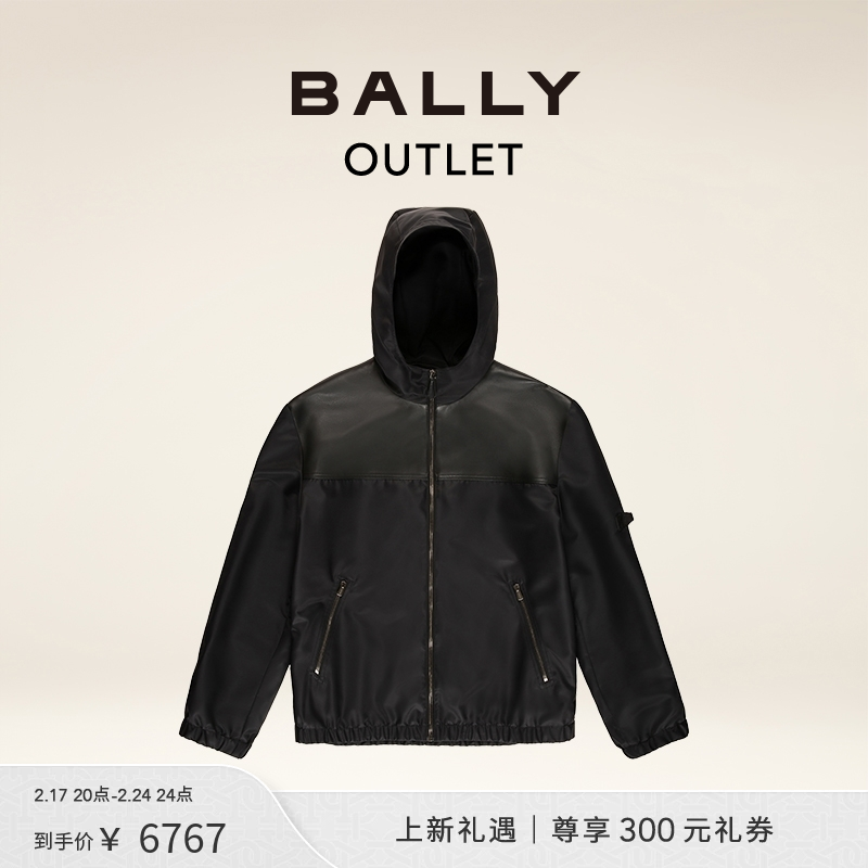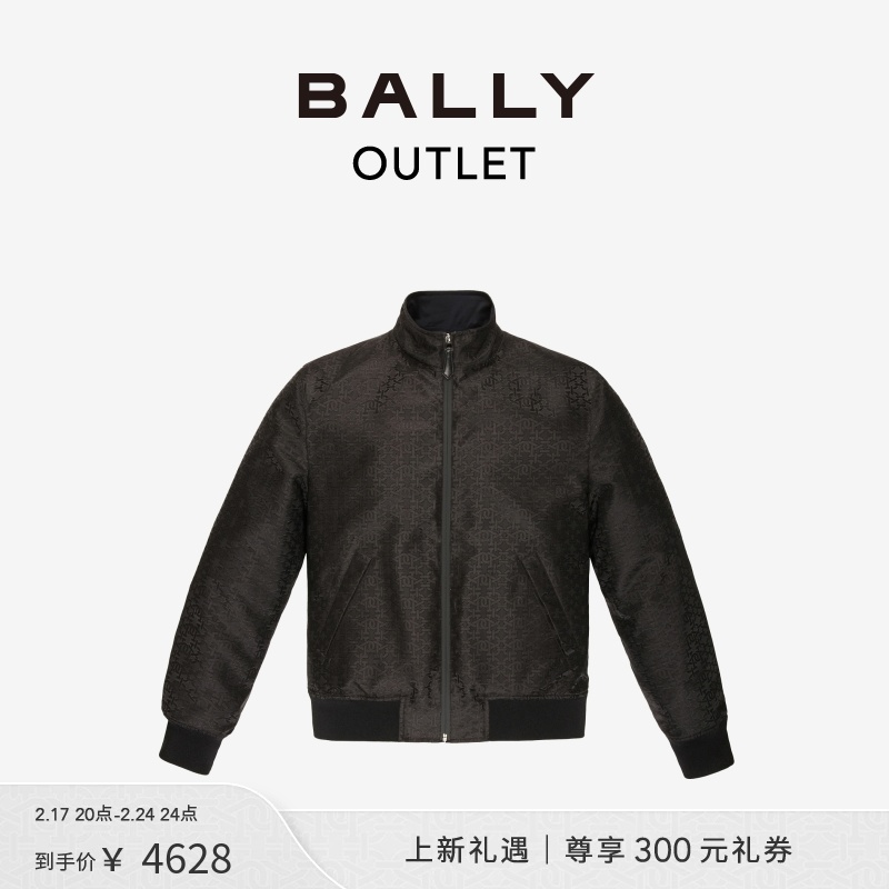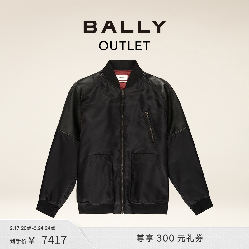 BALLY/巴利Curling胶囊系列男士黑色尼龙飞行员夹克外套6302876