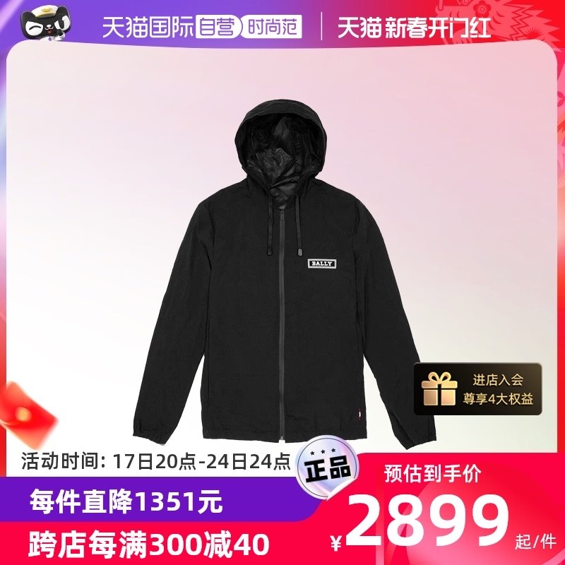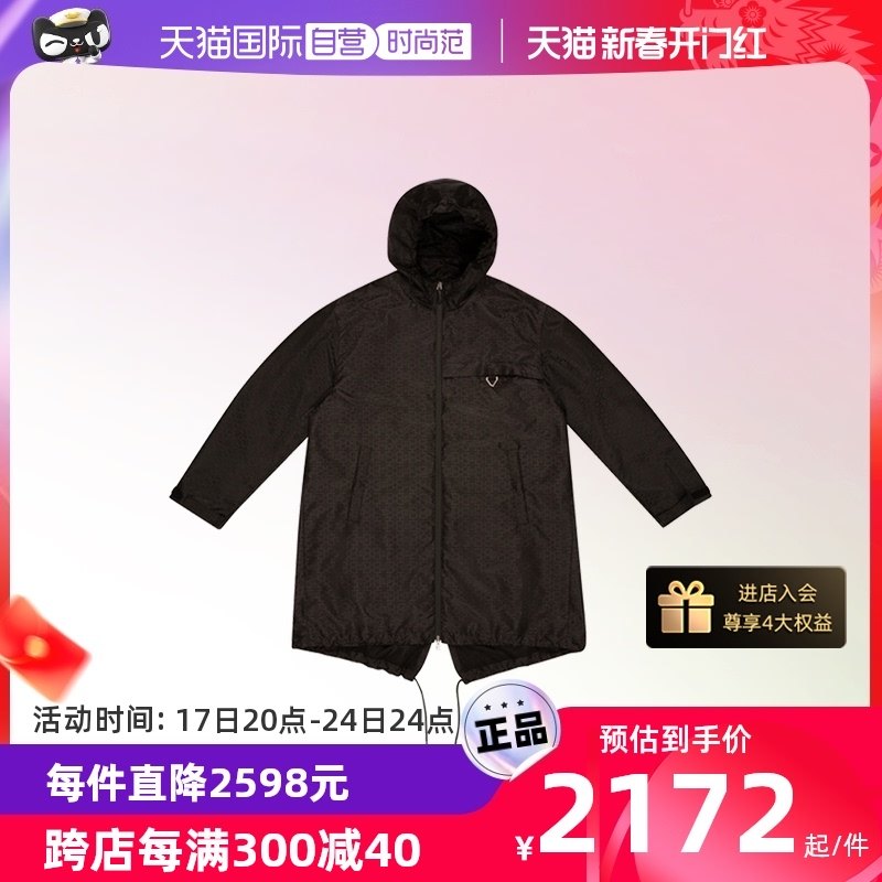 【自营】Bally/巴利新款男士黑色印花中长款连帽风衣夹克外套