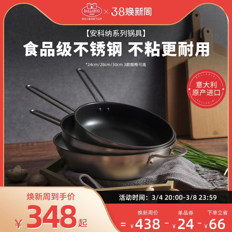 意大利ballarini巴拉利尼安科纳不锈钢不粘煎炒锅24/28/30cm