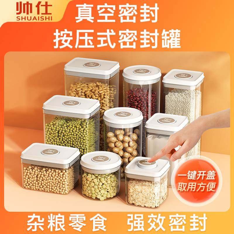 帅仕按压式密封罐五谷杂粮收纳厨房保鲜盒食品级塑料真空储物罐子